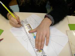 À partir des cartes, les enfants réalisent des dessins, puis découpent des morceaux afin de réaliser les éléments des vitraux, puis sélectionnent leurs choix et constituent le vitrail avec les éléments choisis.
